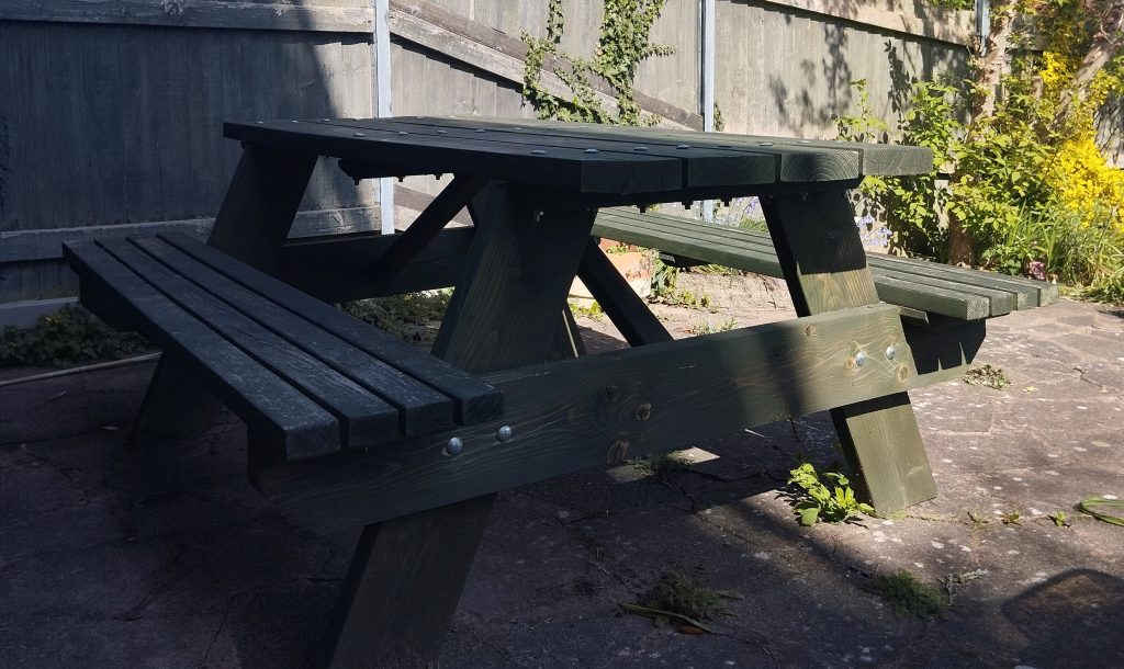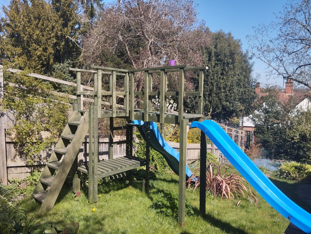 We also have this lovely picnic table for eating al fresco on sunny days; this climbing frame cleverly built on the steep hillside of our lawn and this rustic Wendy house which looks like it has been nestled into a corner of the garden for decades and of which Gertrude Jekyll would be proud.